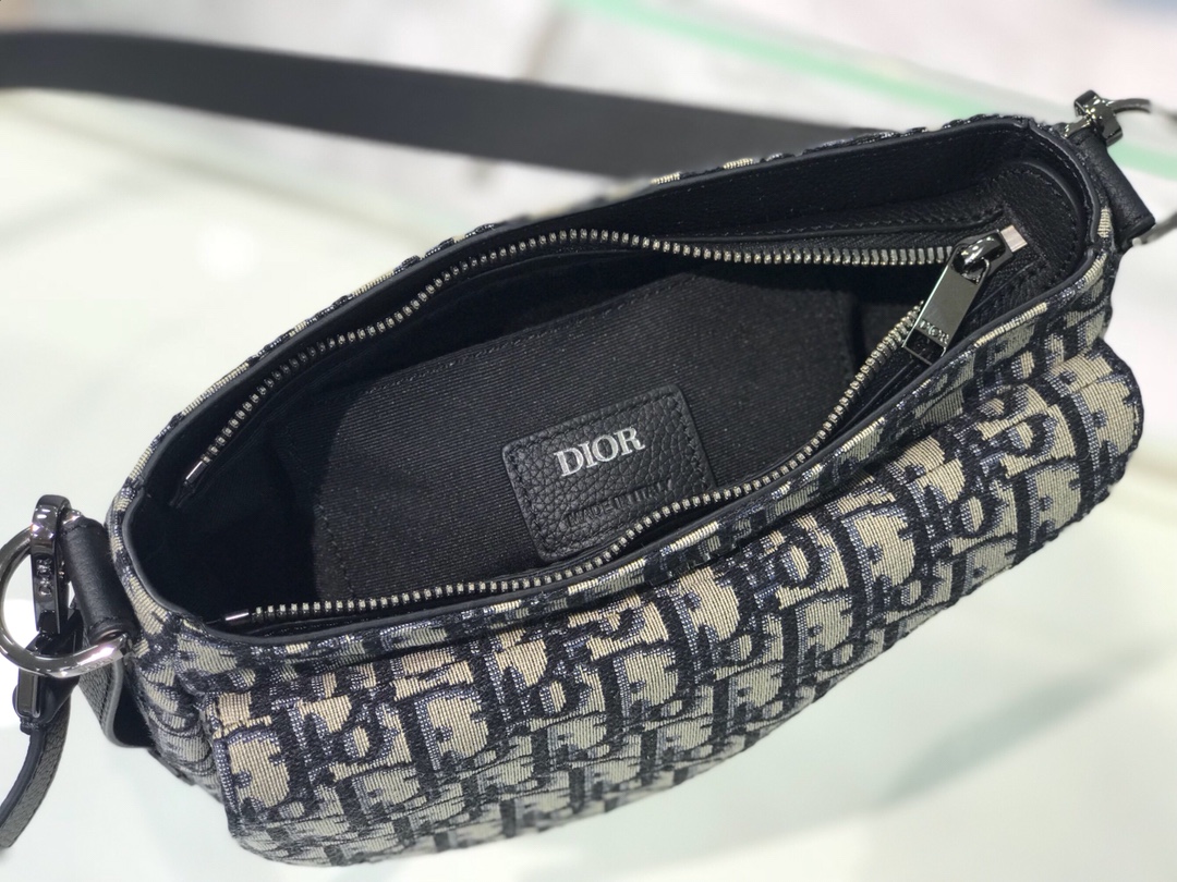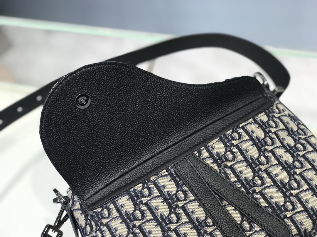 D10r beige black and navy blue D10r oblique tapestry and black grained calfskin 26cm