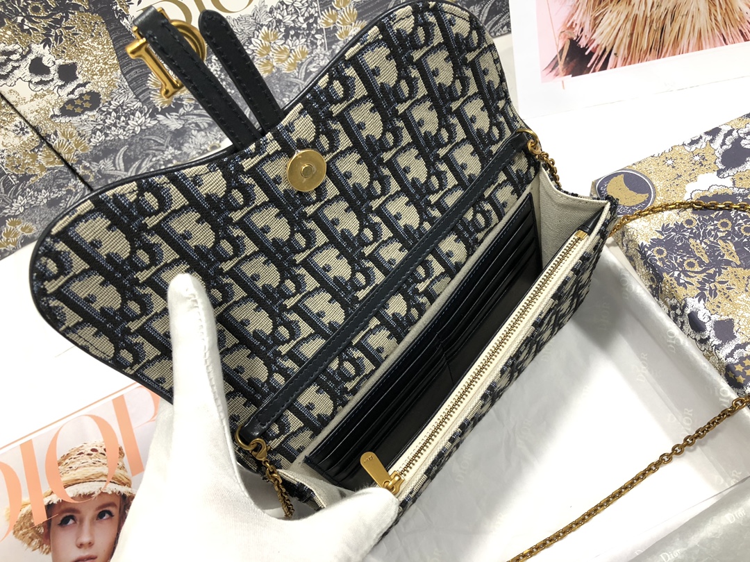 D10r saddle bag blue toile de jouy embroidery m0446 25.5 x 20 x 6.5 cm