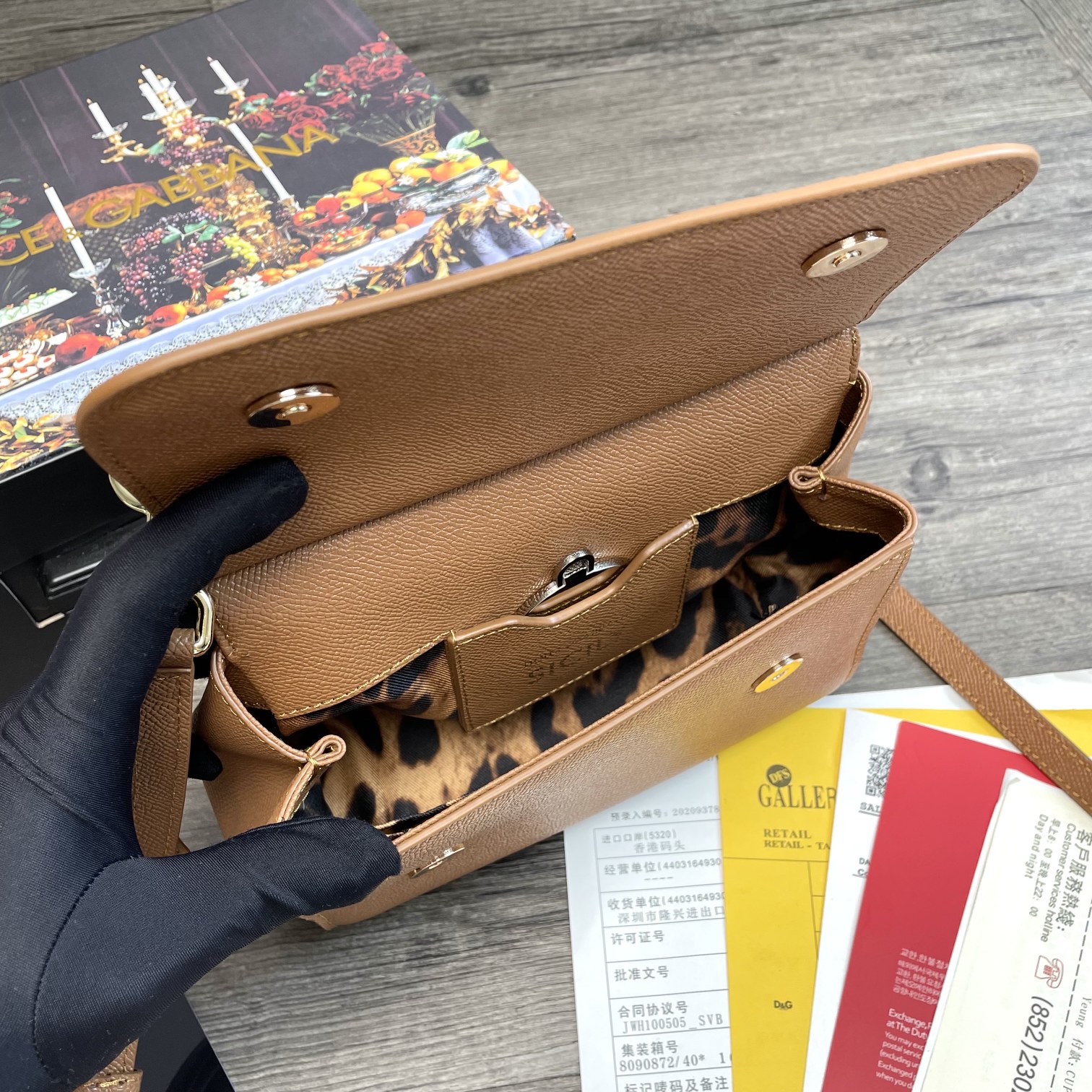 DOLCE & GABBANA Medium Dauphine Leather Sicily Bag Brown BB6002 25 x 12 x 22 cm
