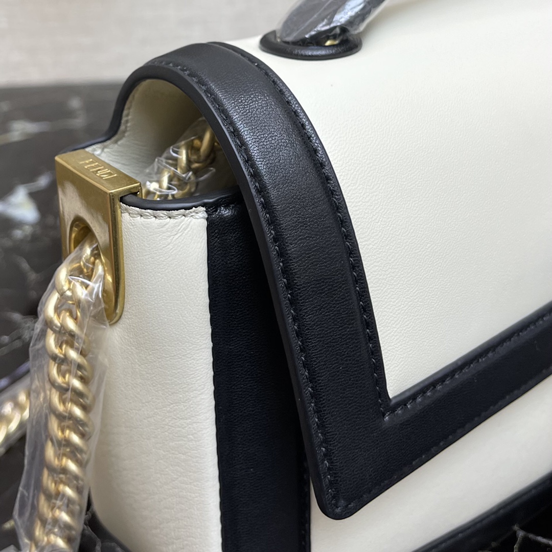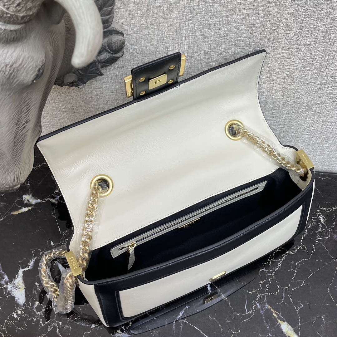 F**di mini baguette chain white and black nappa leather bag 8bs045 19 × 5 × 10 cm