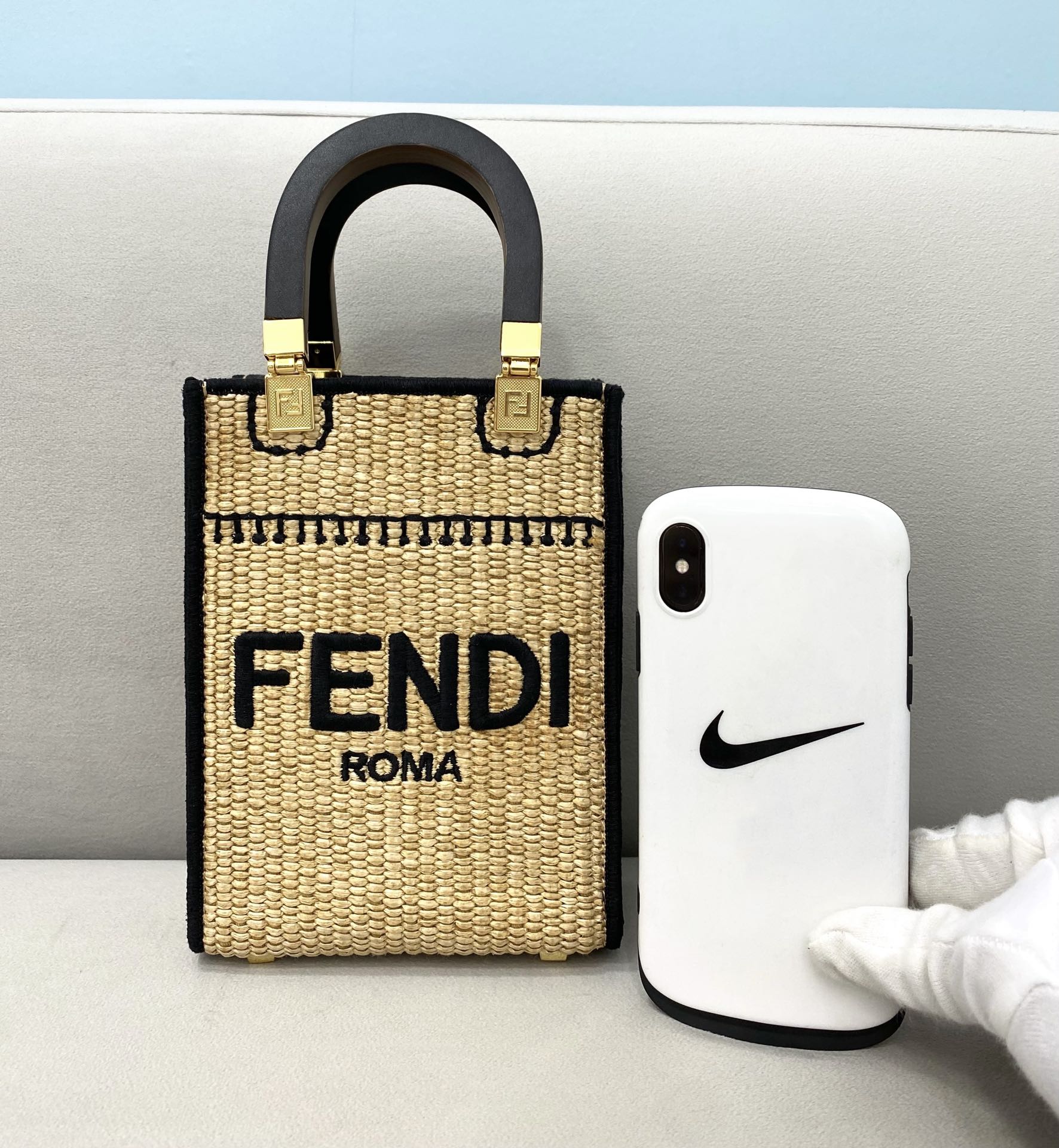 F**di mini sunshine shopper braided straw 8bs051afqpf 13 x 18 x 6.5 cm