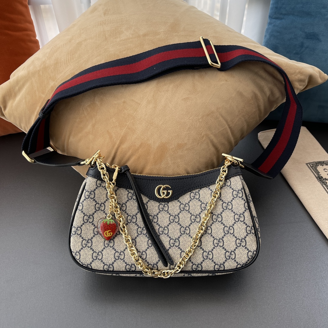 Gvc*1 ophidia mini gg shoulder bag black leather 722117 - 23x17x7cm