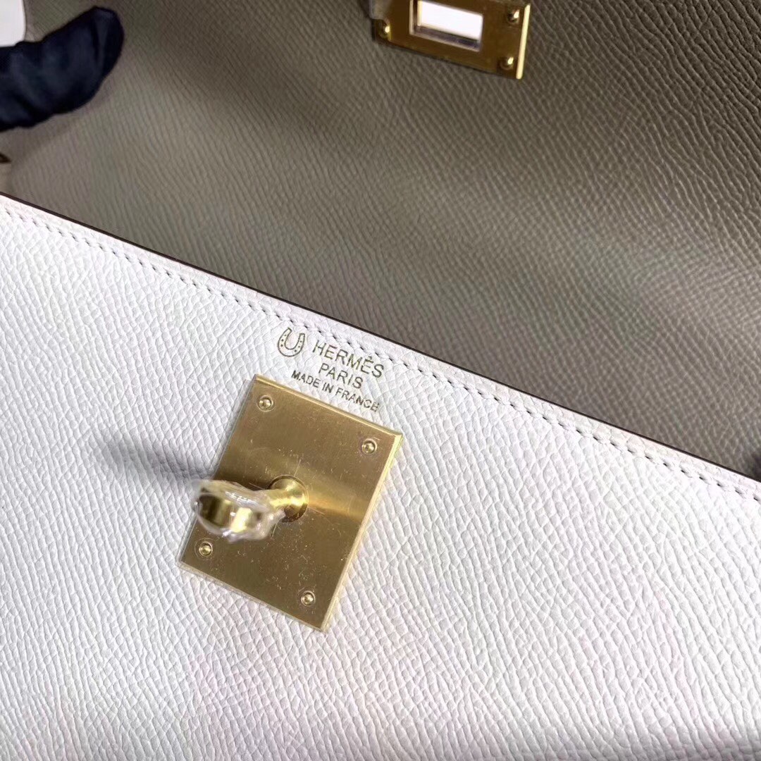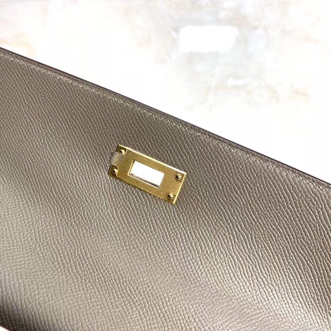 H**me5 kelly depeche briefcase epsom gold hardware taupe 38 cm