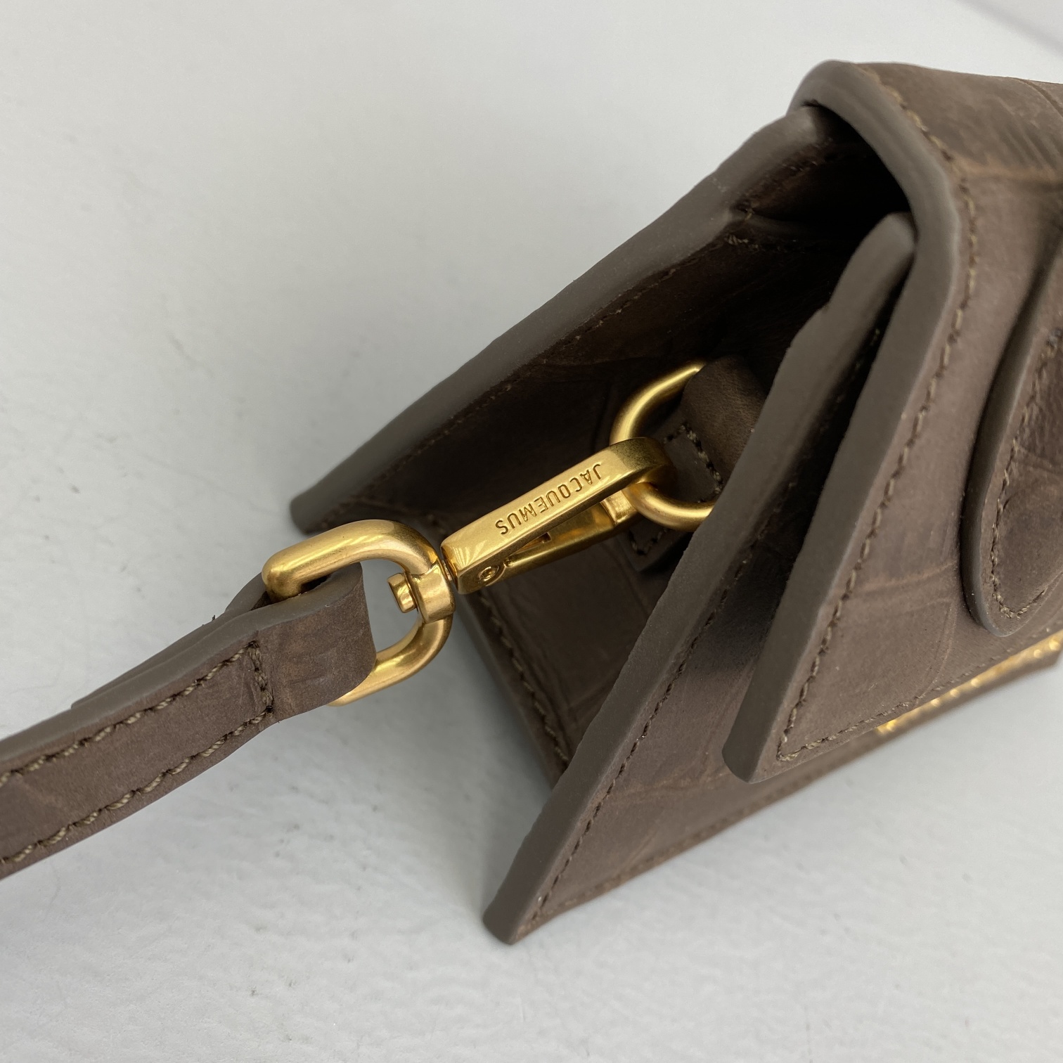 JACQUEMUS SMALL Le Chiquito Crocodile Leather Brown 213BA02 18 x 15.5 x 8 cm