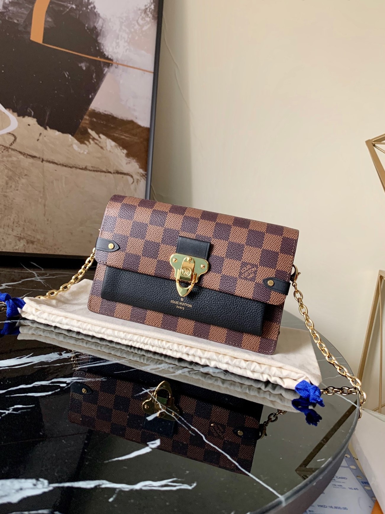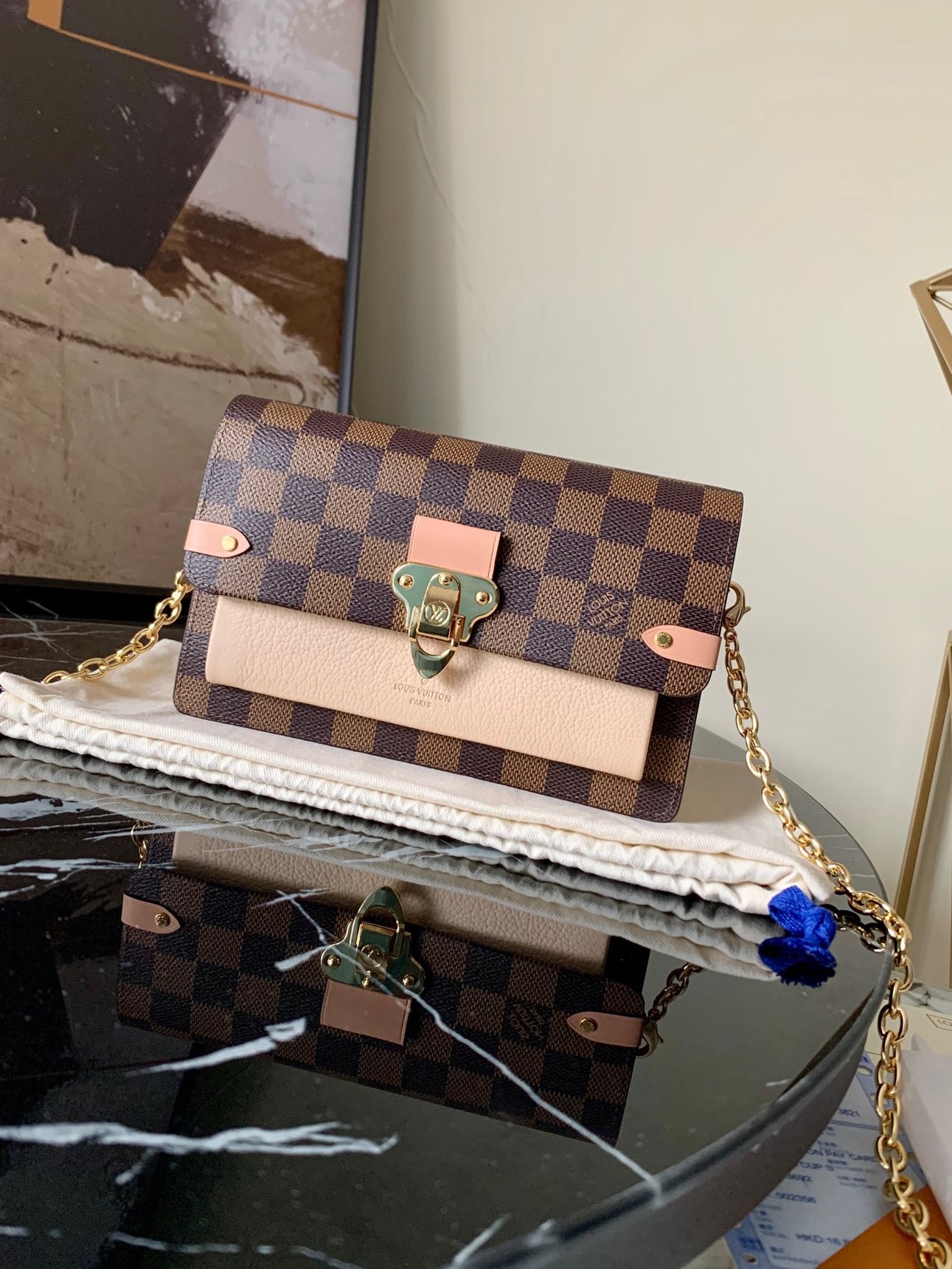 Lv croisette wallet damier canvas wallet detachable metal chain ponk_19.0 x 10.5 x 2.5 cm