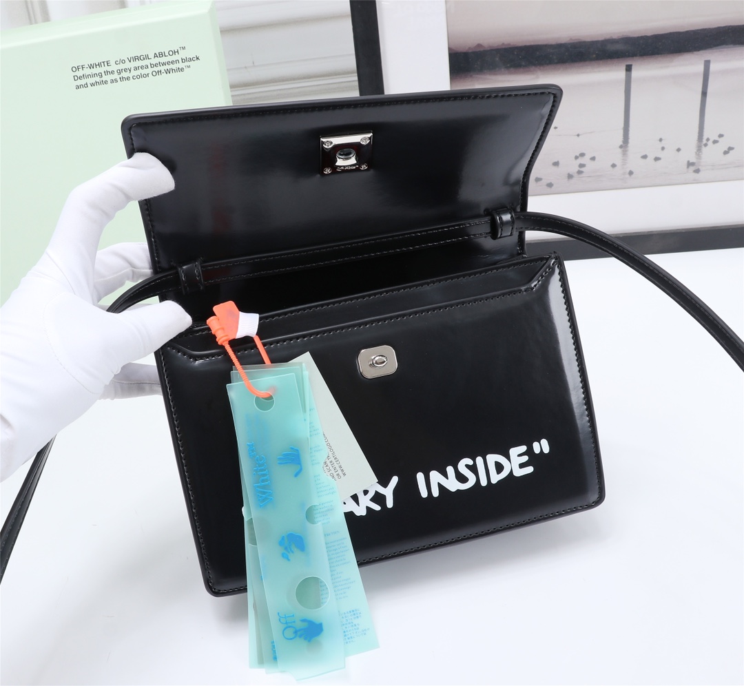 OFF WHITE 1.4 Quote Jitney Bag Leather Black 22 x 14 x 7 cm