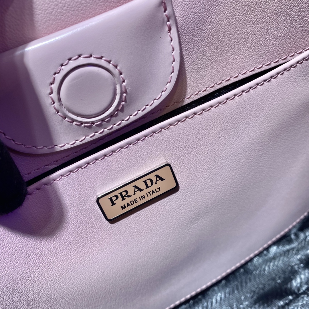 Pra*a top handle tote bag leather powder pink/black 1bg148 33 × 24 × 14.5 cm