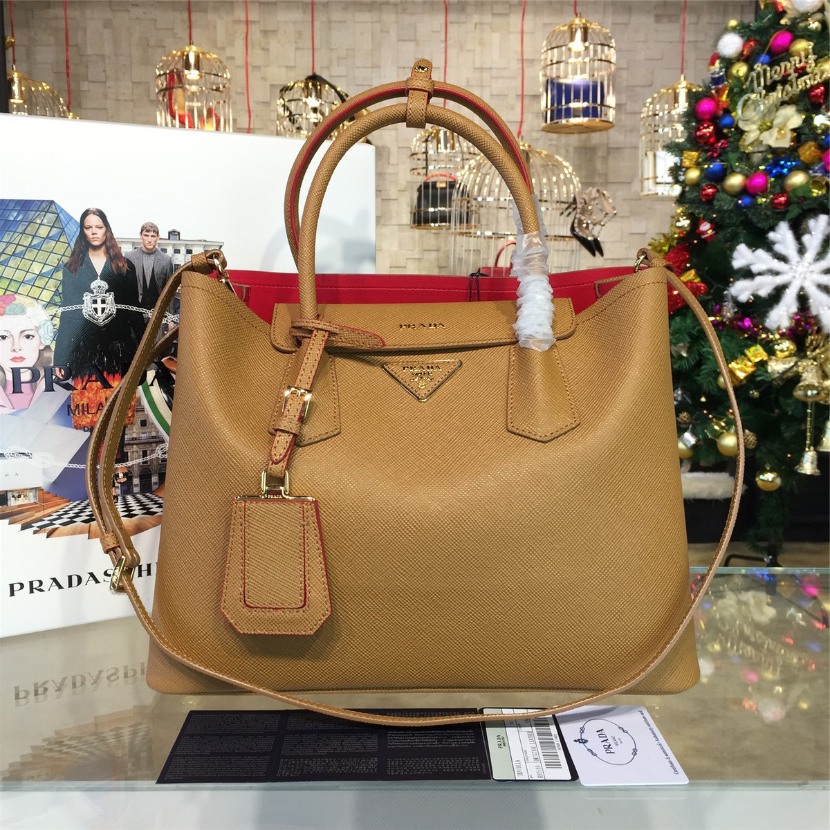 Pra*a double bag large 4082 35cm x 17.5cm x 25.5cm