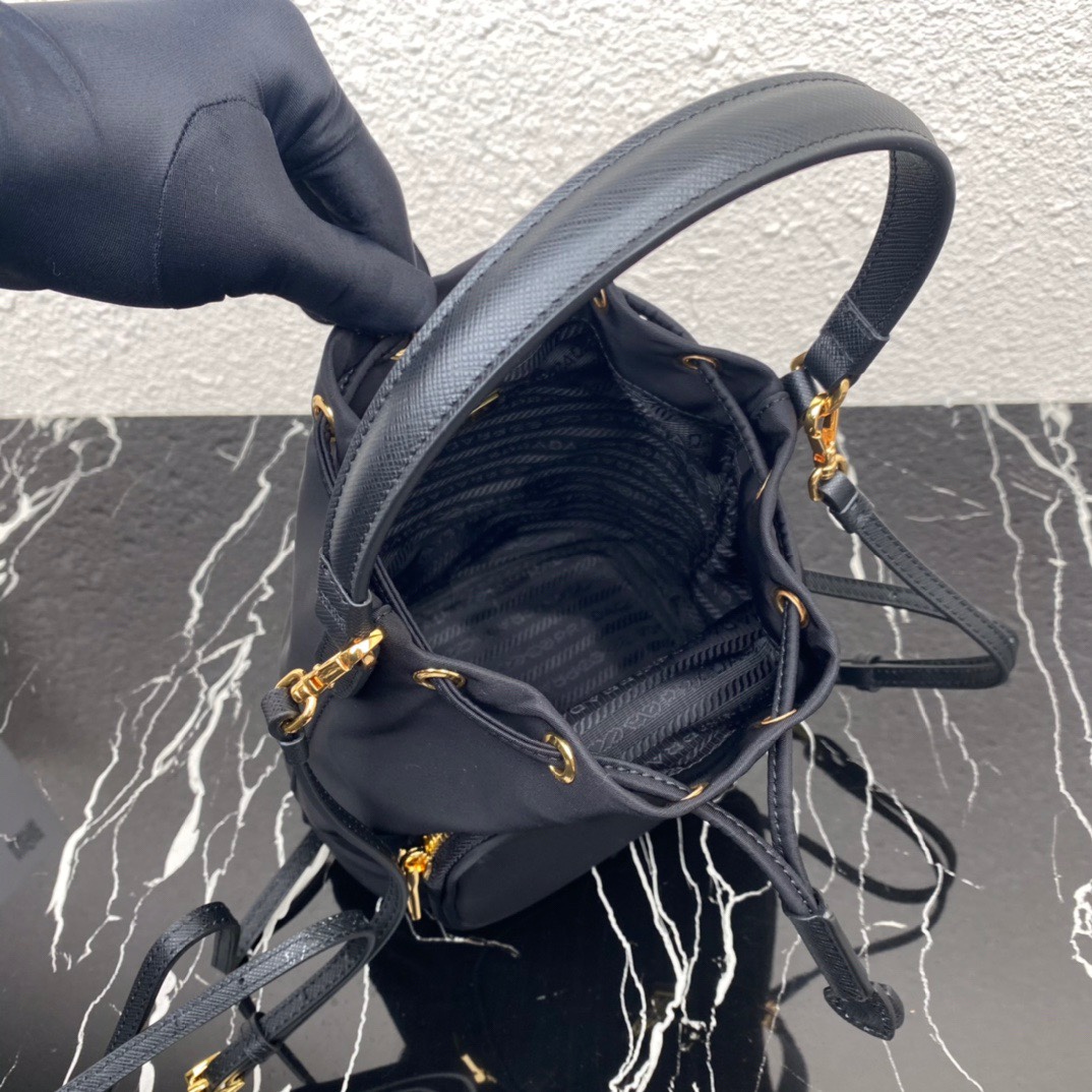 Pra*a saffiano leather bucket bag black 1be032 22 × 22 × 14 cm