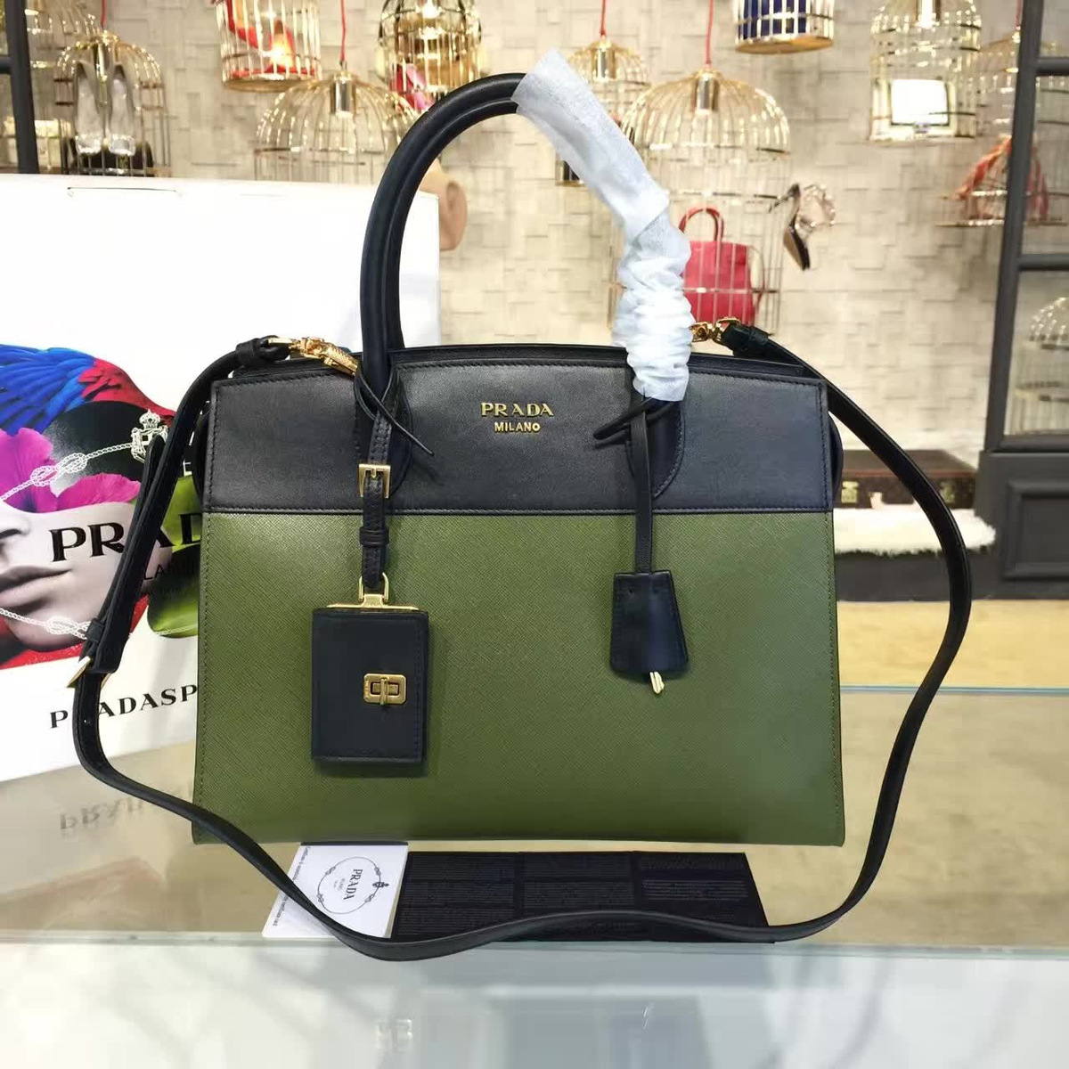 Pra*a medium esplanade bag leather green/black 30 x 22 cm