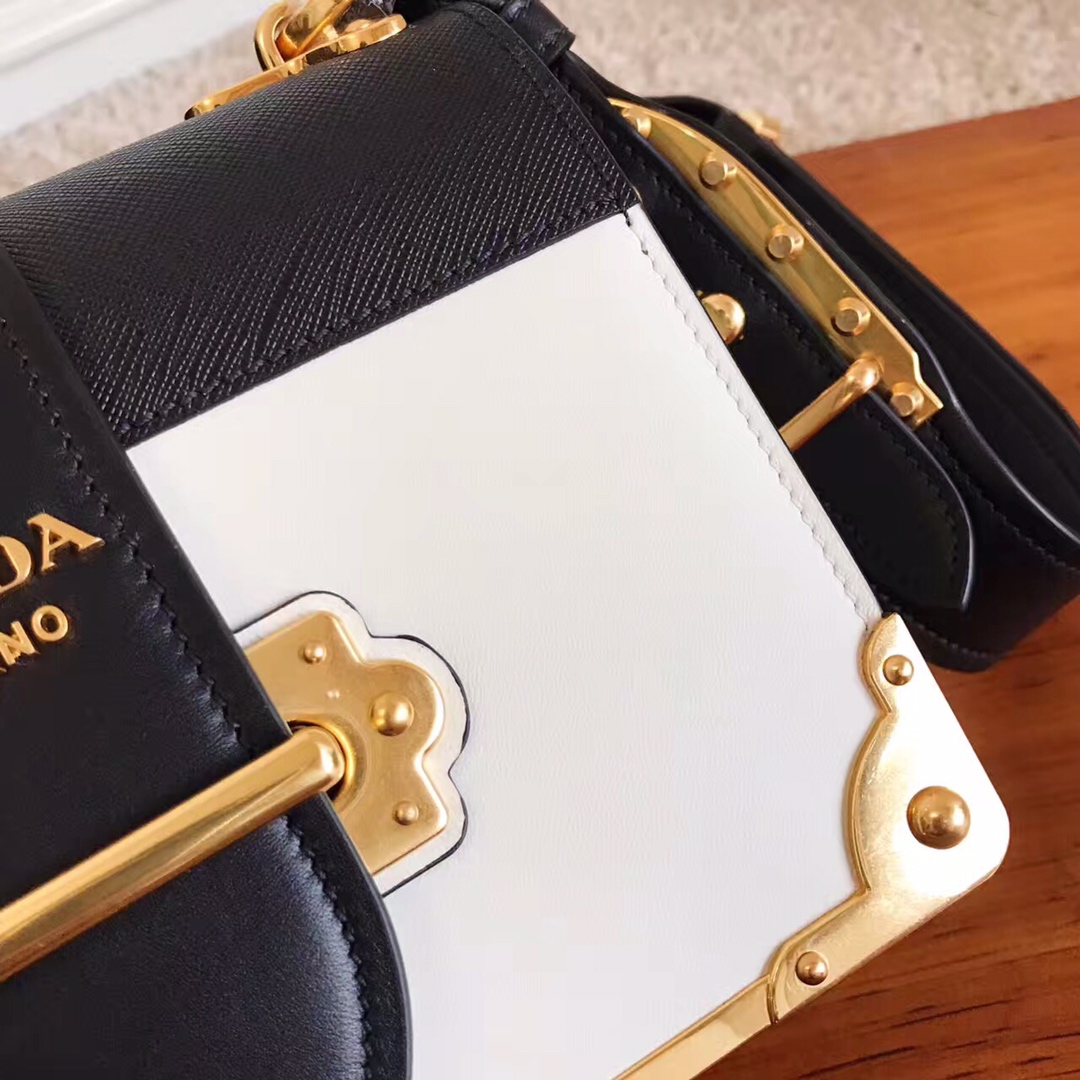 Pra*a leather Pra*a cahier bag white and black 1bd045 19 x 14 x 9 cm