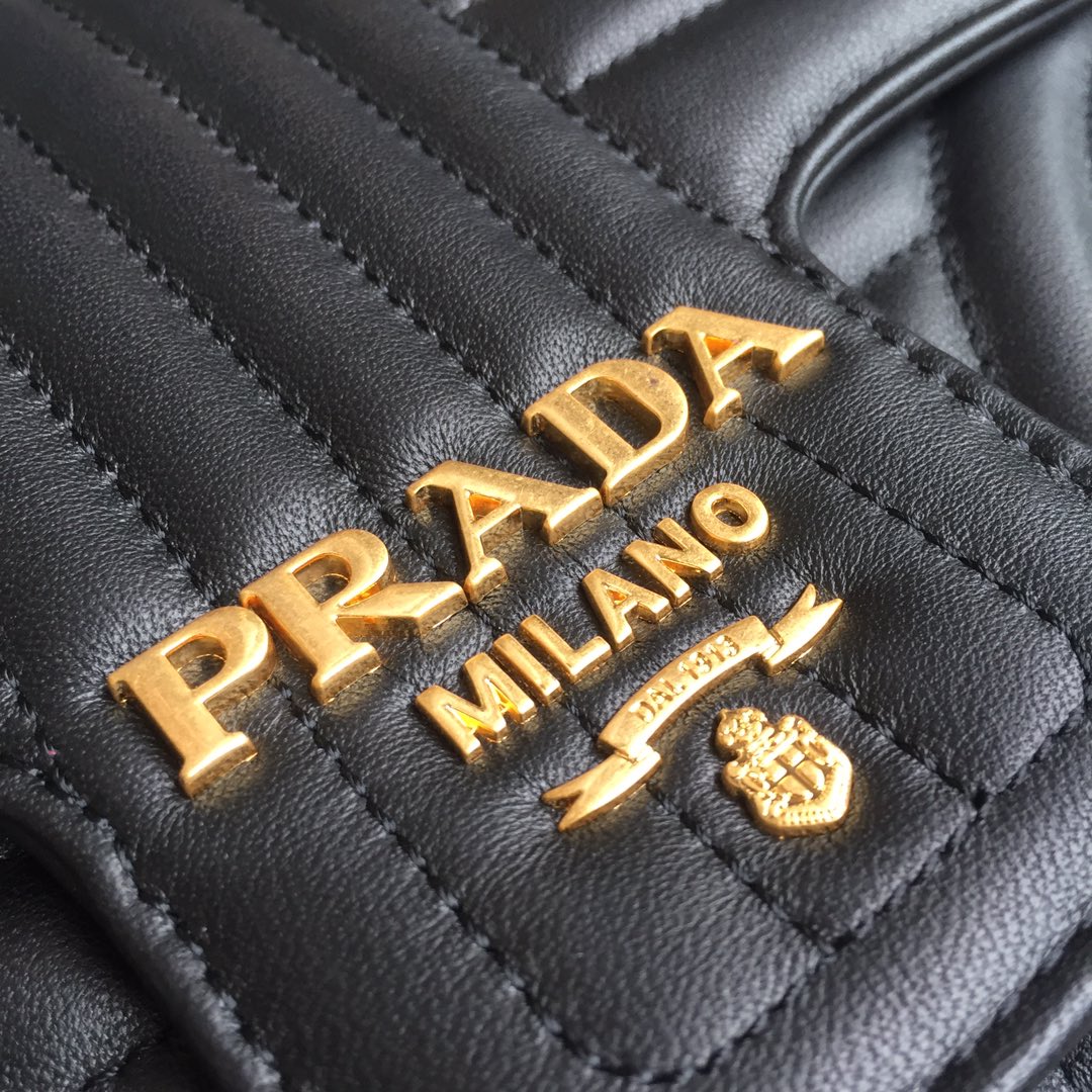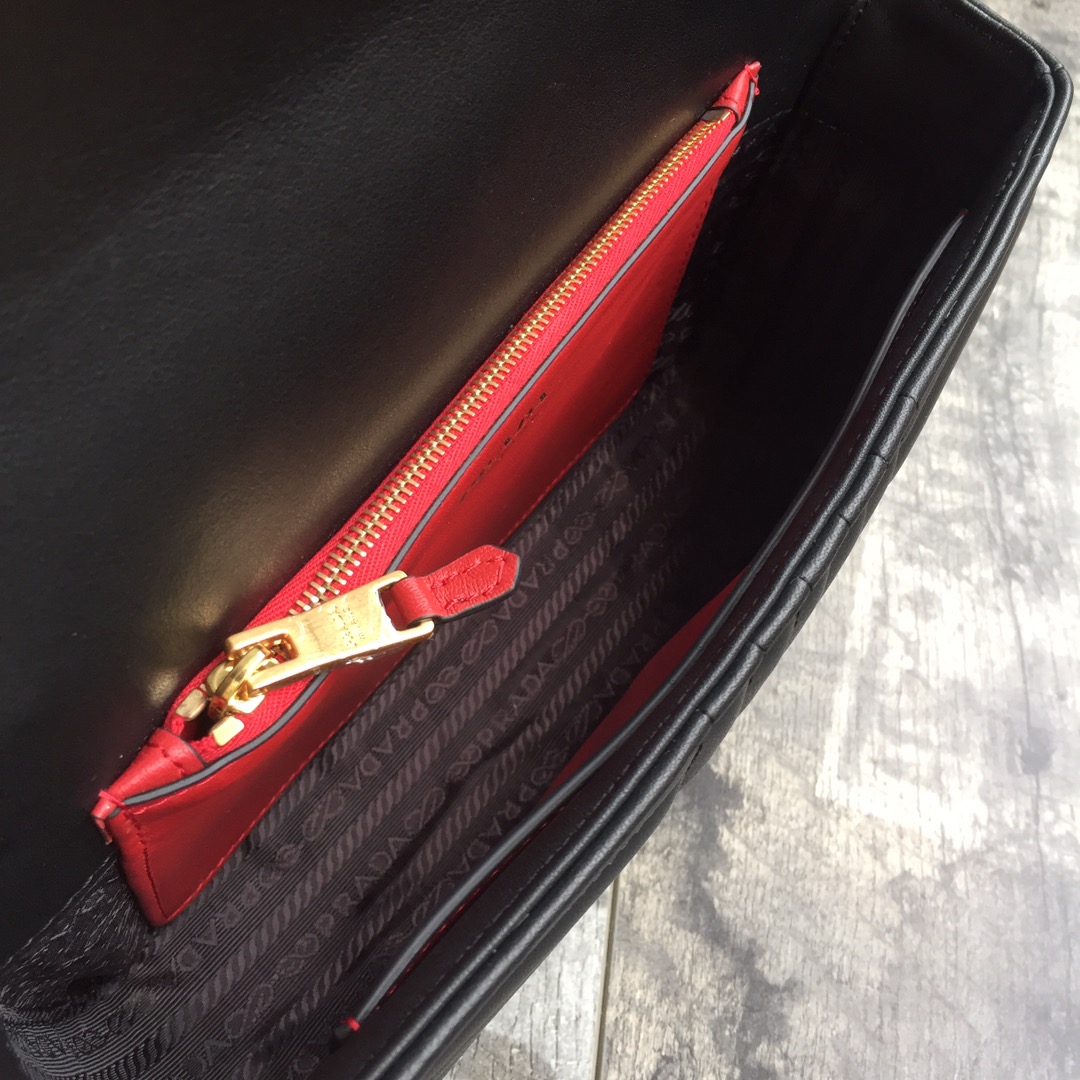 Pra*a pocket nappa leather bag black 1bd295 22 x 7.5 x 14 cm