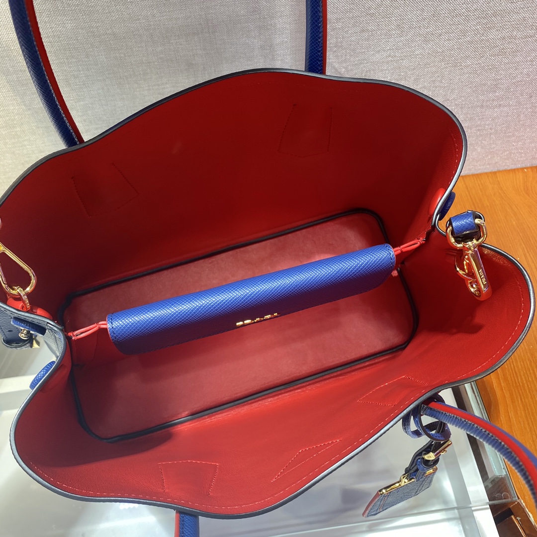 Pra*a saffiano leather emblème bag blue 1bd217 20.5 x 14 x 5 cm