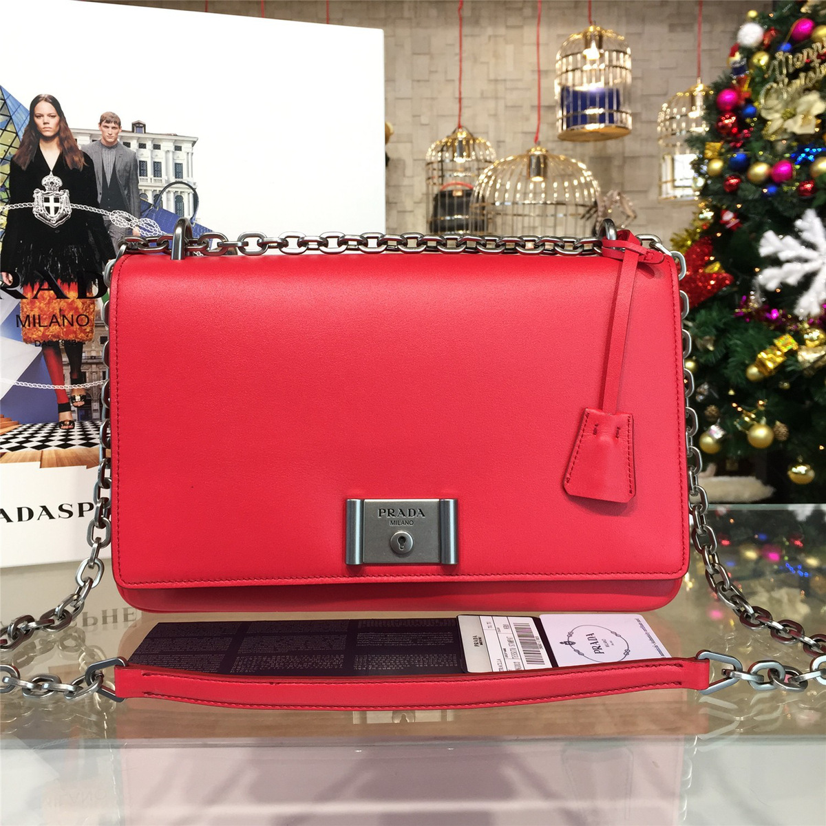 Pra*a small margit leather bag red 1bc082 20 x 7 x 20 cm