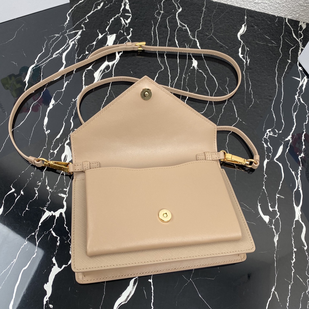 Pra*a saffiano leather emblème bag powder pink 1bd217 20.5 x 14 x 5 cm