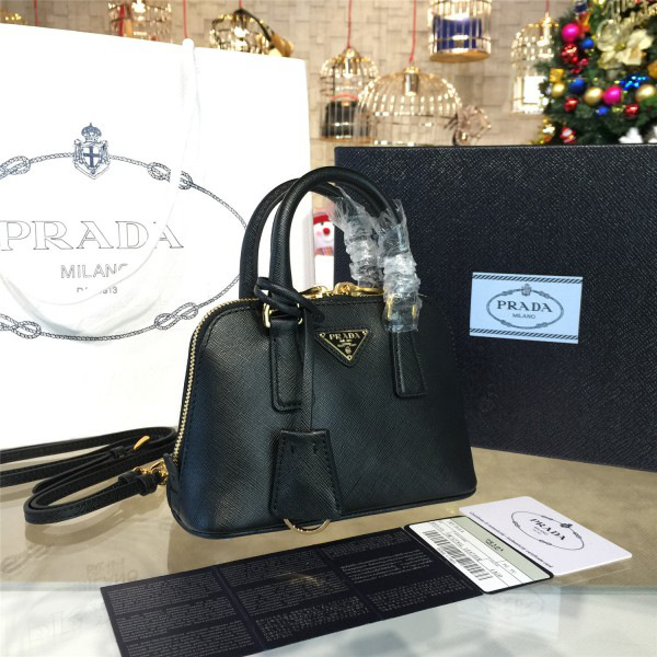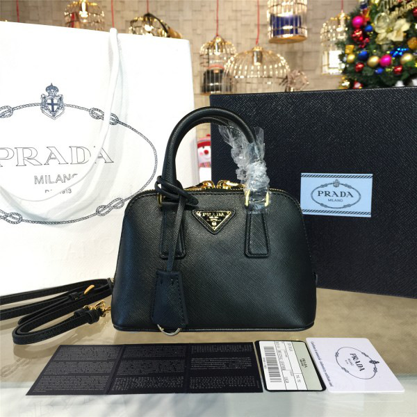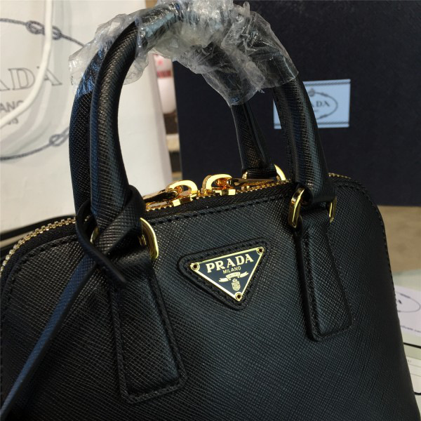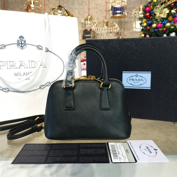 Pra*a top handle tote bag leather black/red 1bg148 33 × 24 × 14.5 cm