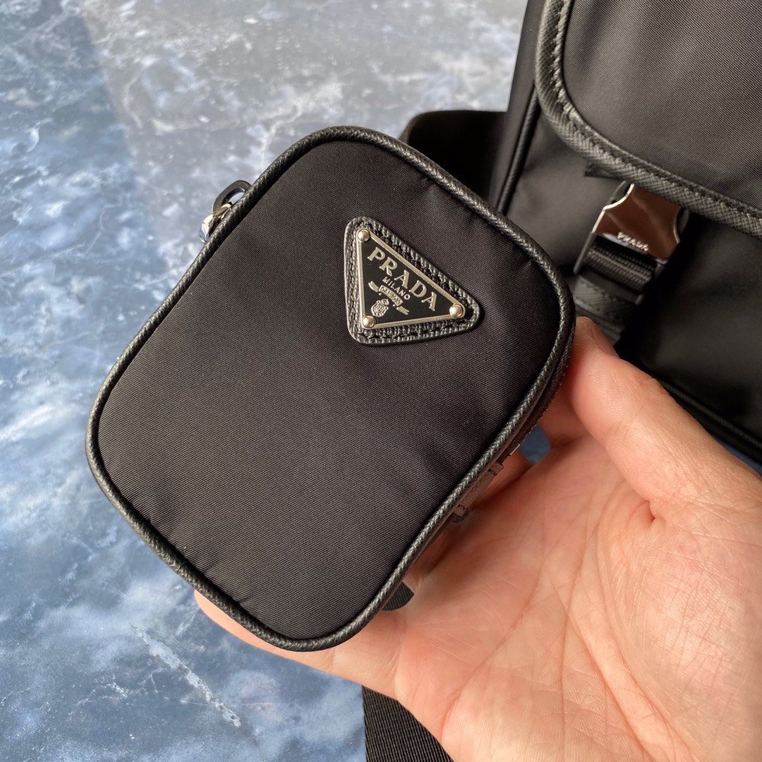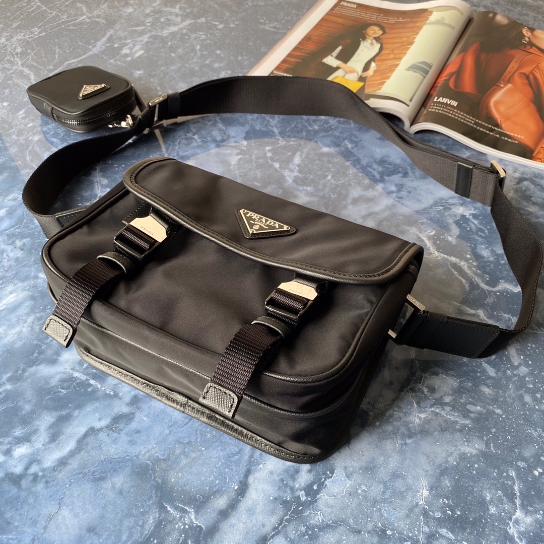 Pra*a re-nylon/saffiano leather shoulder bag black 2vd034 16 x 22 x 8.5 cm