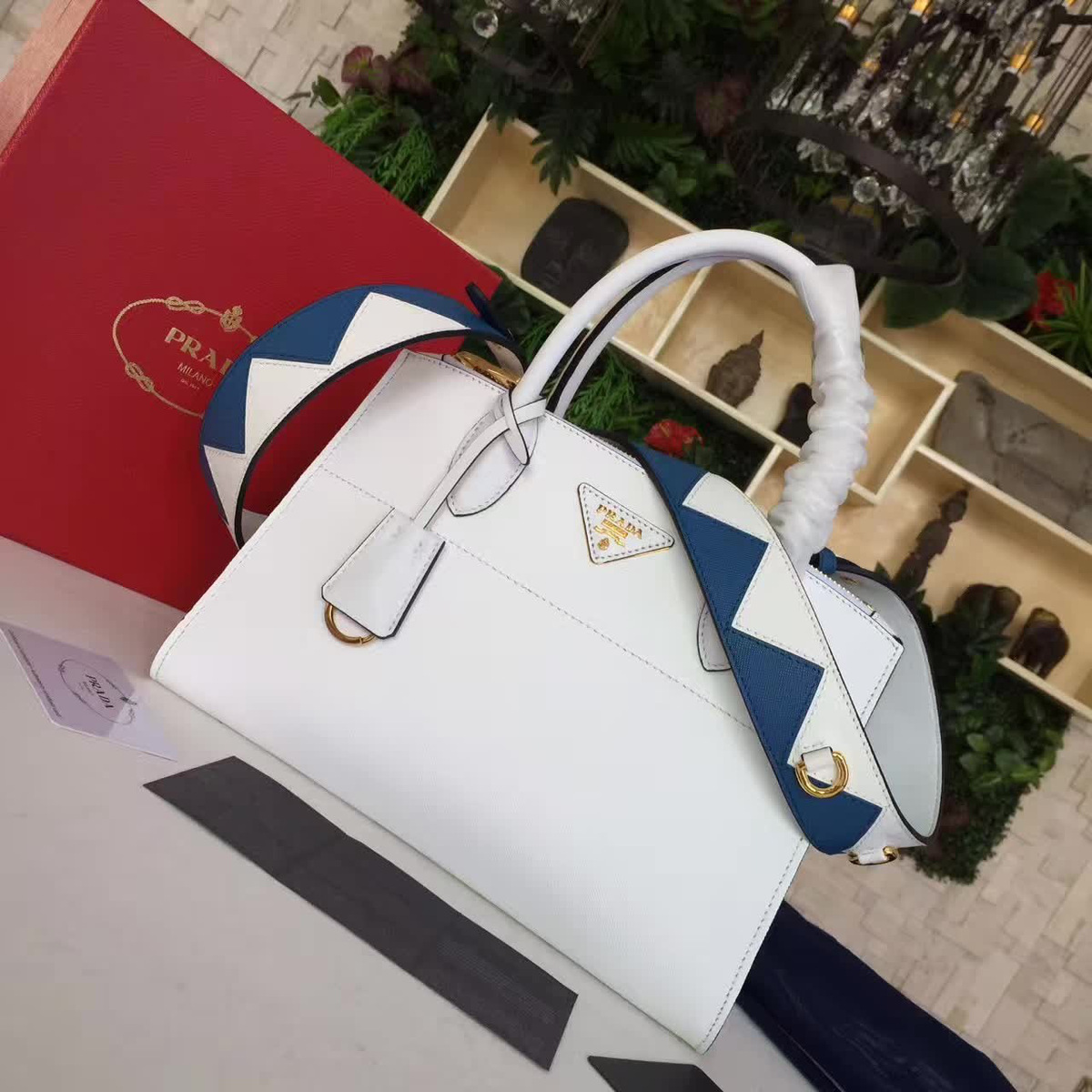Pra*a cleo brushed leather shoulder bag with flap white 1bd311 23 x 18 x 2.5 cm