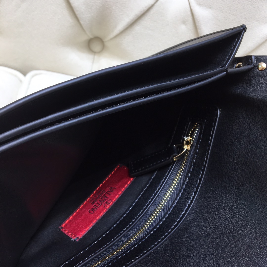 • Va1e*ntin0 garavani rockstud clutch with hand holder black 28 cm