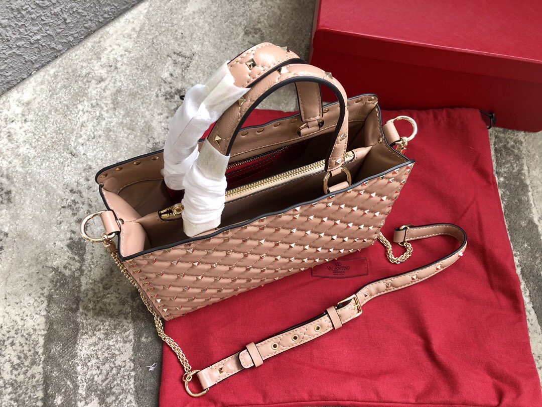 Va1e*ntin0 medium garavani rockstud tote soft cowhide leather pink beige 50031s 27 × 7 × 25 cm