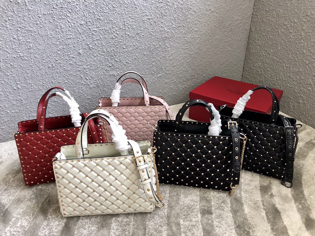 Va1e*ntin0 large garavani rockstud tote soft cowhide leather brown 50031 31 × 8 × 30 cm
