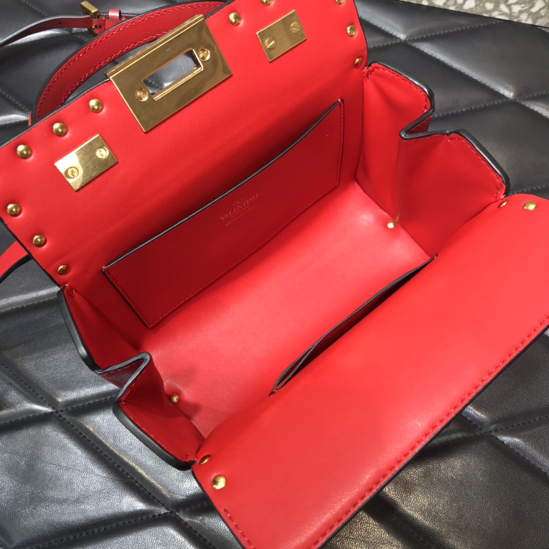 Va1e*ntin0 rockstud alcove grainy calfskin box bag red ww2b0j73wax 19 x 12 x 8 cm
