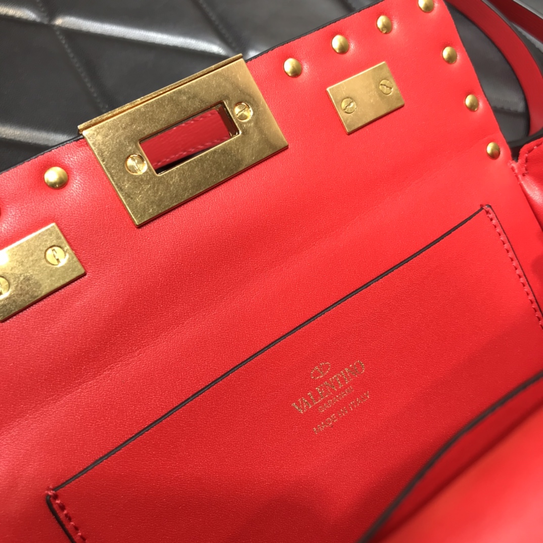 Va1e*ntin0 rockstud alcove grainy calfskin box bag black ww2b0j73wax 19 x 12 x 8 cm