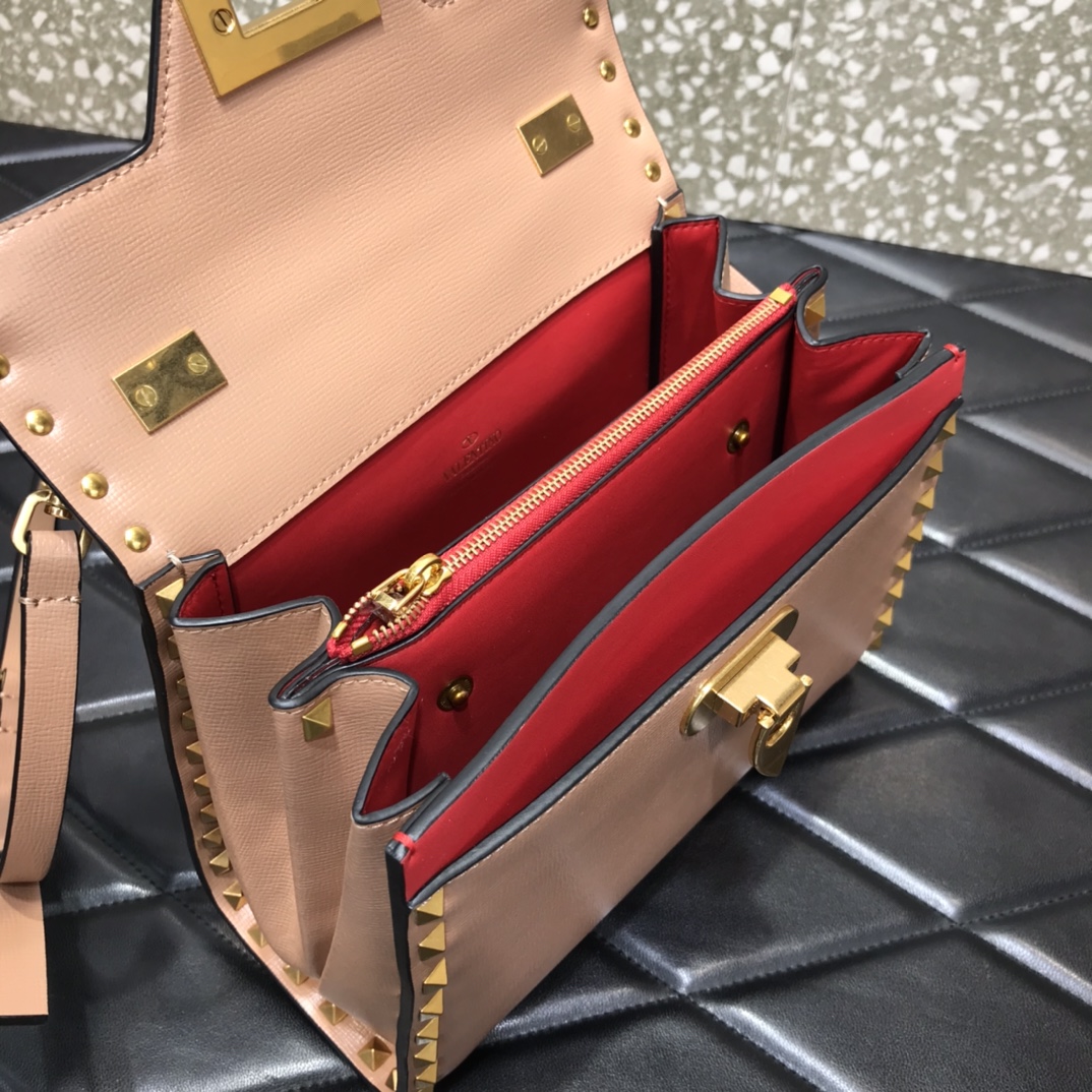 Va1e*ntin0 medium rockstud alcove handbag in grainy calfskin rose cannelle ww2b0j41bqz 23 x 20 x 6 cm