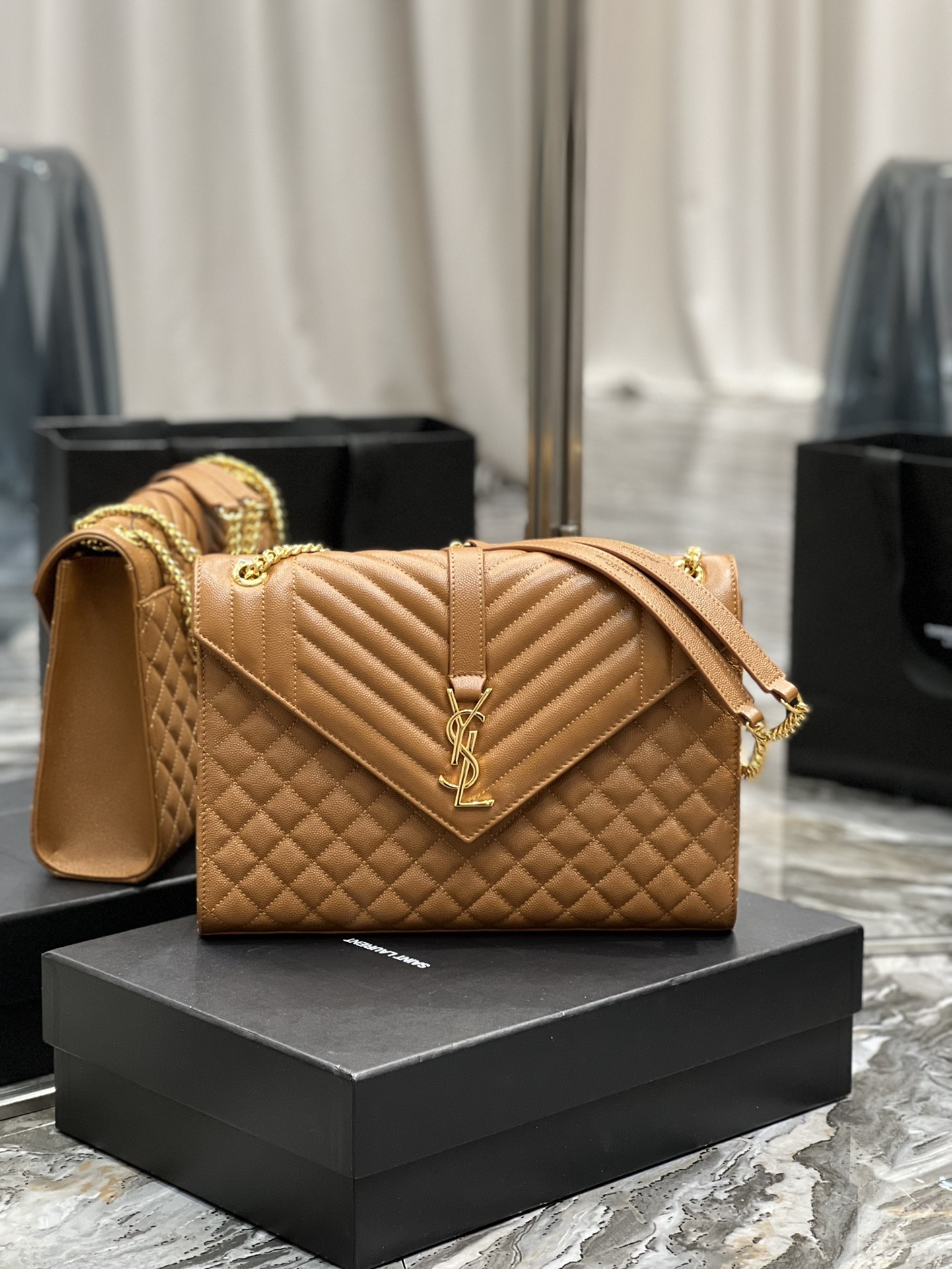 Y51 envelope medium bag in grained leather black 600185 24 x 7.5 x 18 cm