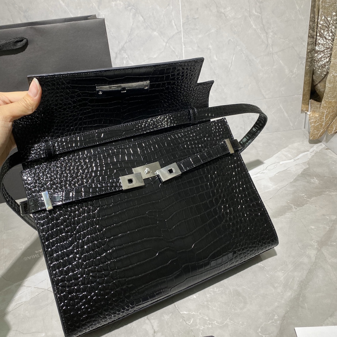 y51 manhattan shoulder bag in box Sa1nt Lau*nt leather black 579271 29 x 20.5 x 7 cm