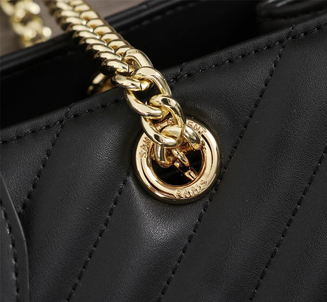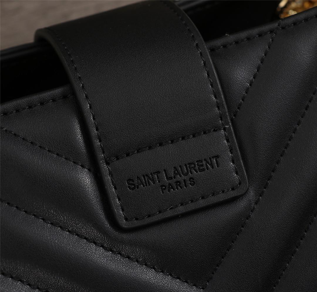 Y51 cassandra monogram clasp bag in grain de poudre embossed leather black 532750 22 x 16.5 x 5.5 cm