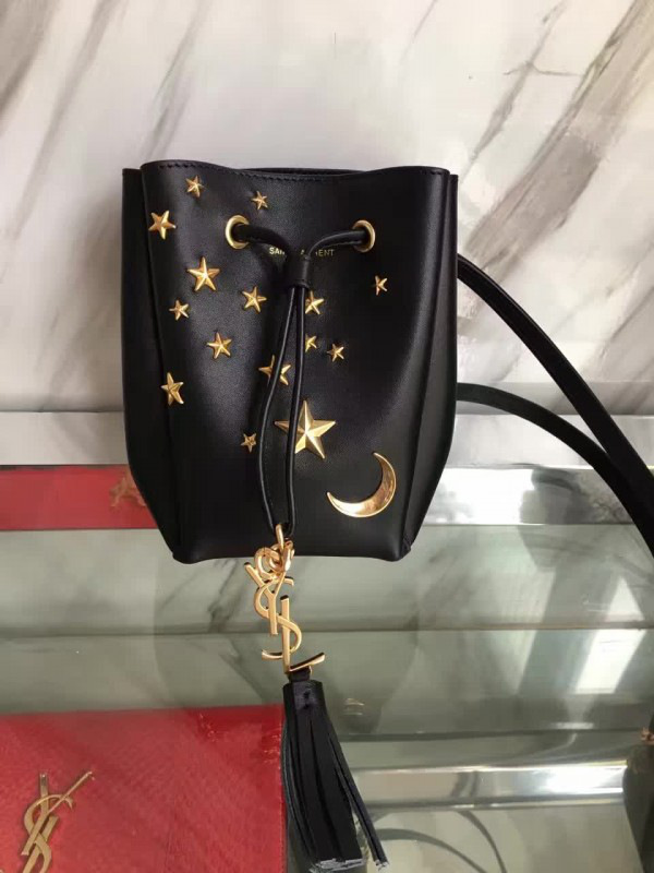 Y51 moon & star blk leather bucket bag 4813 16.5cm x 15cm x 10 cm