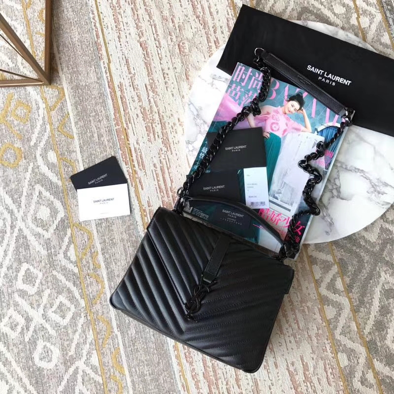 Y51 medium college in matelassÉ leather black 600279 24 x 17 x 7 cm
