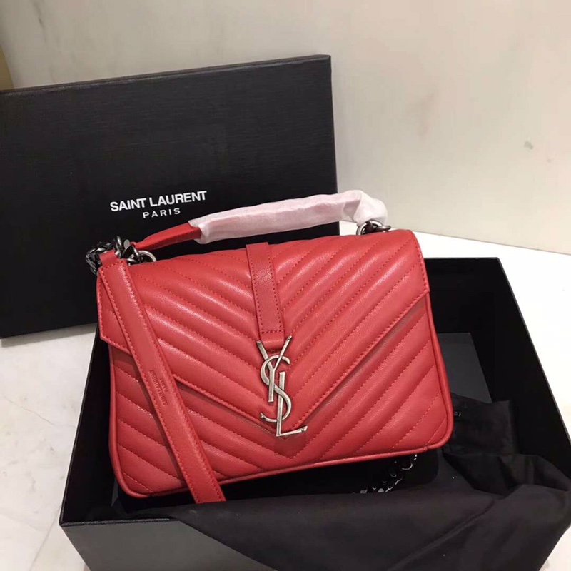 Y51 medium college in matelassÉ leather silver metal red 600279 24 x 17 x 7 cm