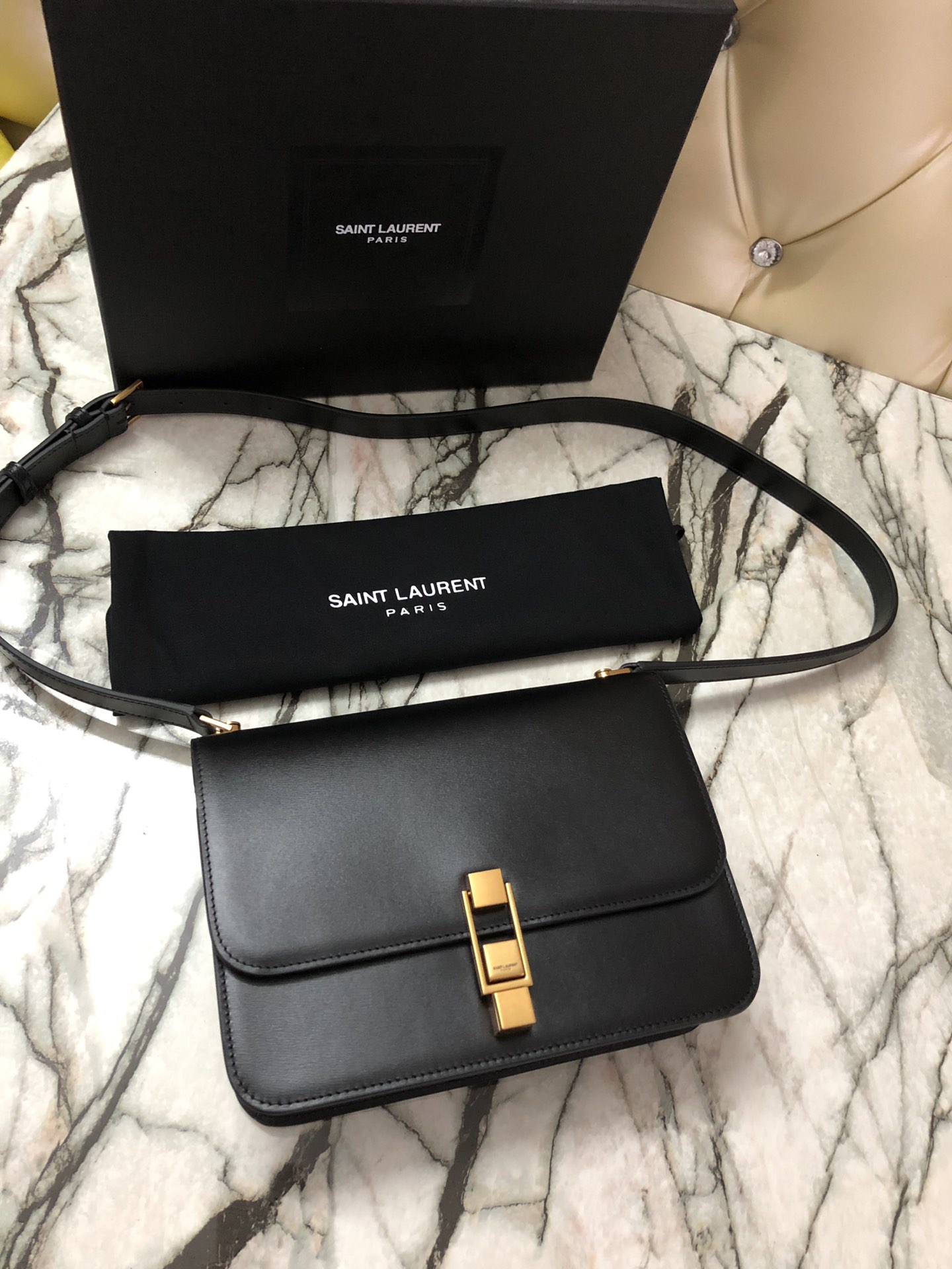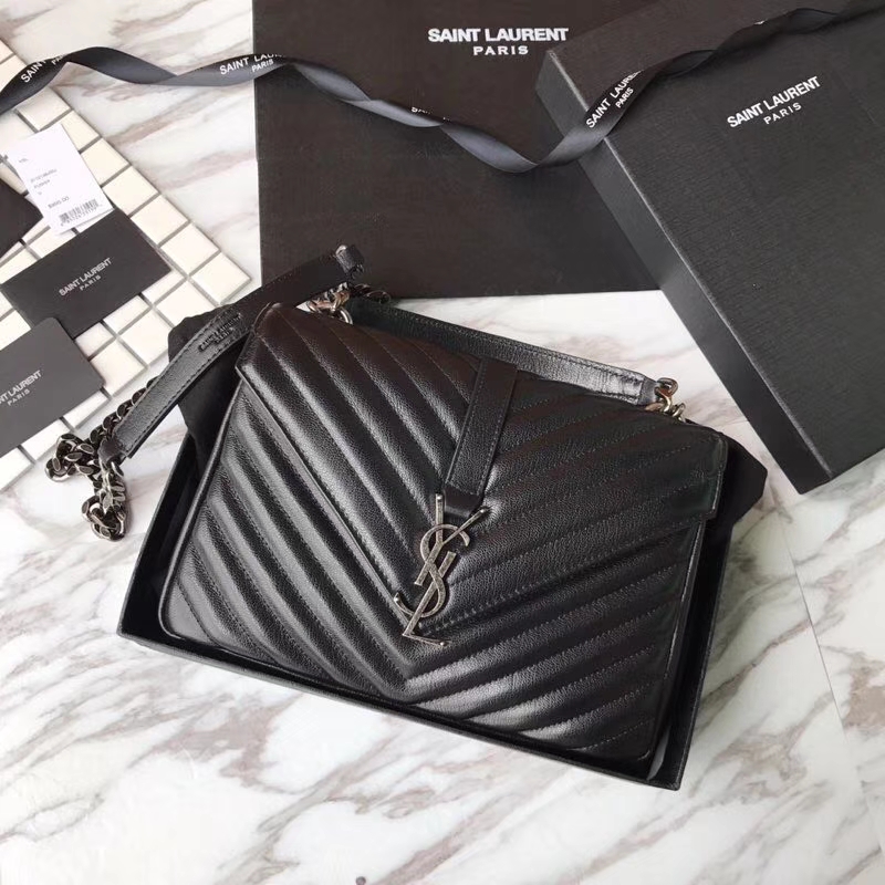 y51 manhattan shoulder bag in box Sa1nt Lau*nt leather black 579271 29 x 20.5 x 7 cm