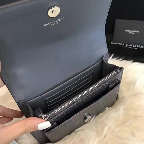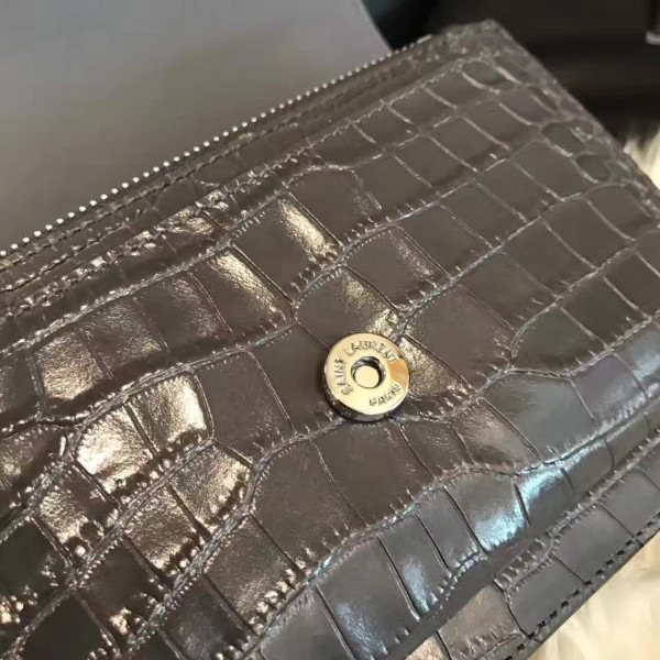 Y51 sunset chain wallet in crocodile embossed shiny leather 4834 17cm x 13cm x 7cm