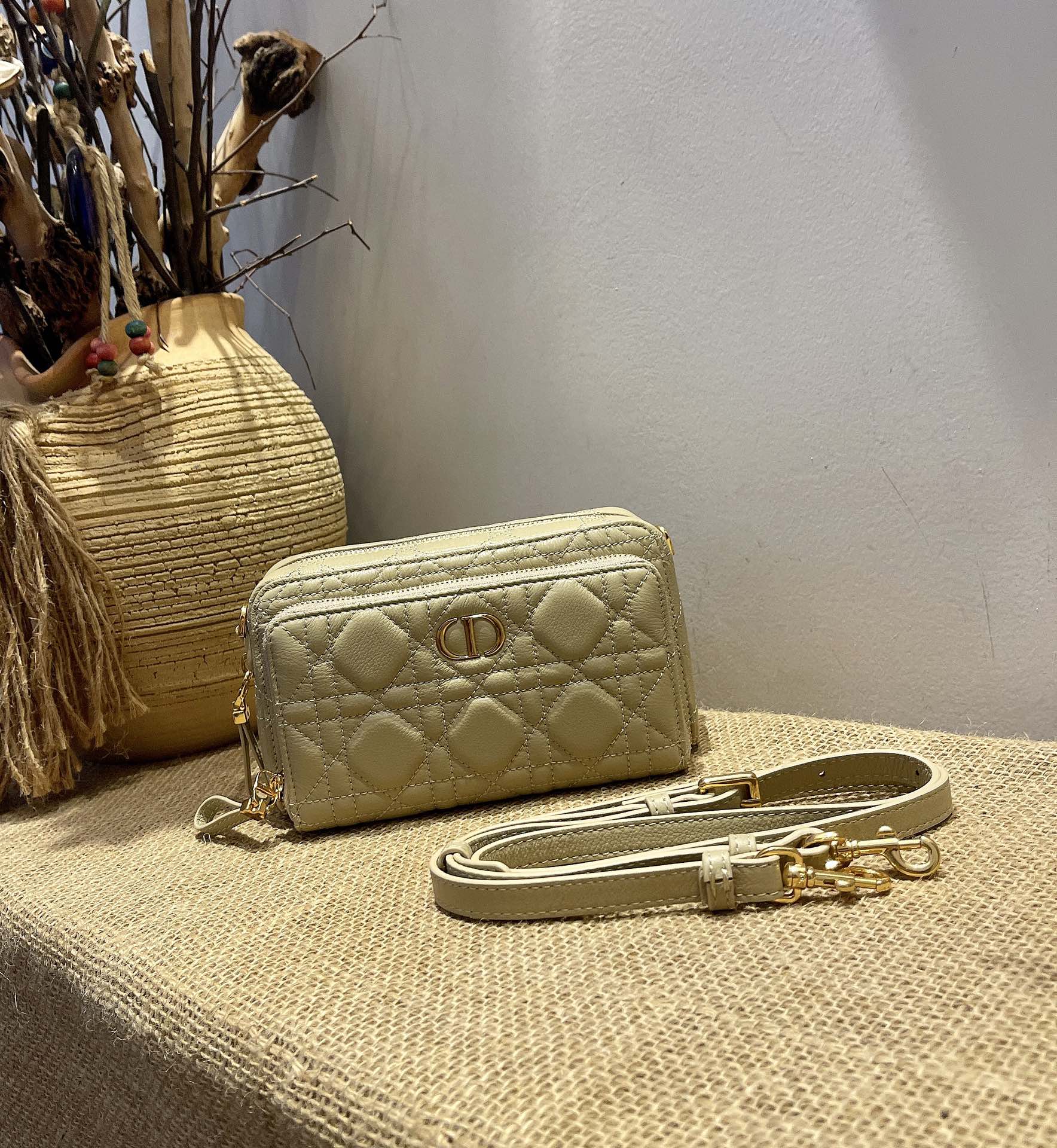 d10r small caro bag gray S*pple cannage calfskin m9241uwhc 20 × 12 × 7 cm