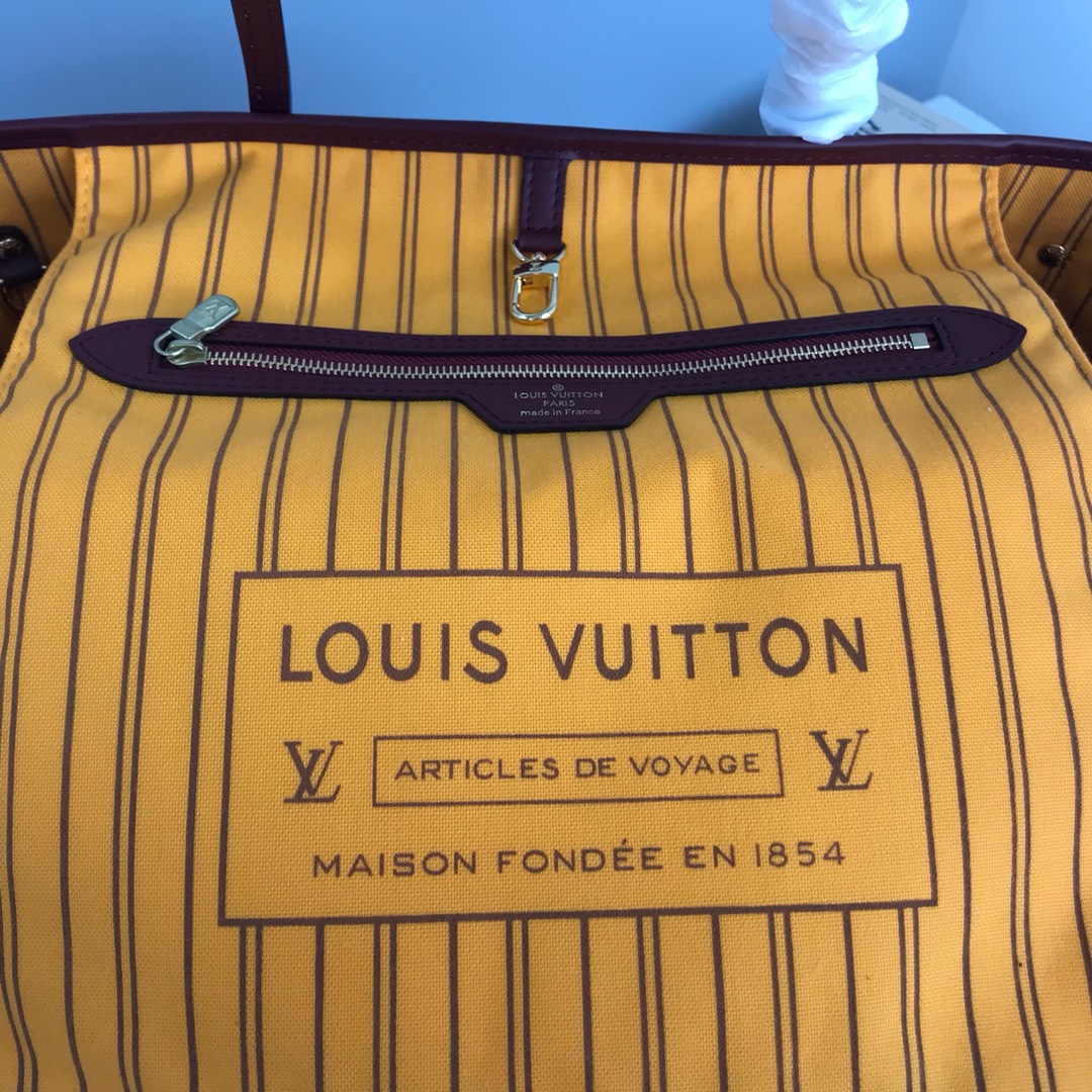 LV Neverfull shopping pm bag N41358 coffee with red 29cm